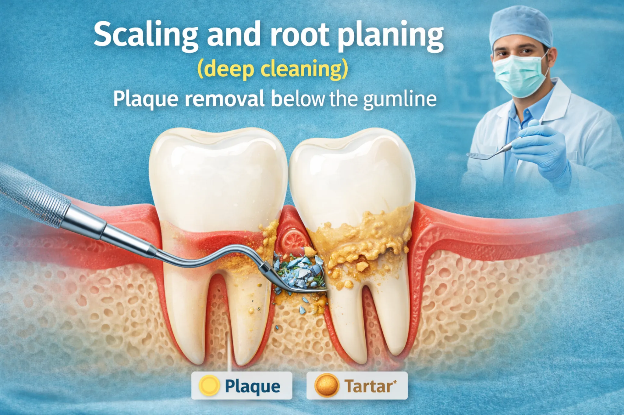 - Scaling and root planing (deep cleaning)